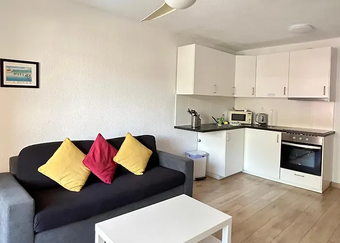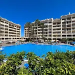 入住洛斯克里斯蒂亚诺斯Pool View 2 Bed Duplex In Castle Harbour C207公寓的客人可以在露台上发发呆,步行13分钟即可抵达特内里费岛。